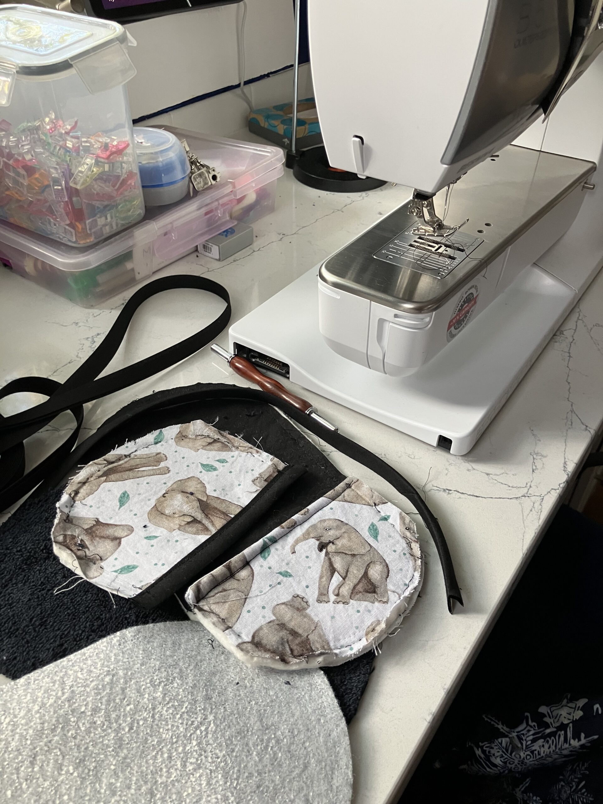 The second photo is in an in process of the clam shell mitt. I am about to sew the binding edge.