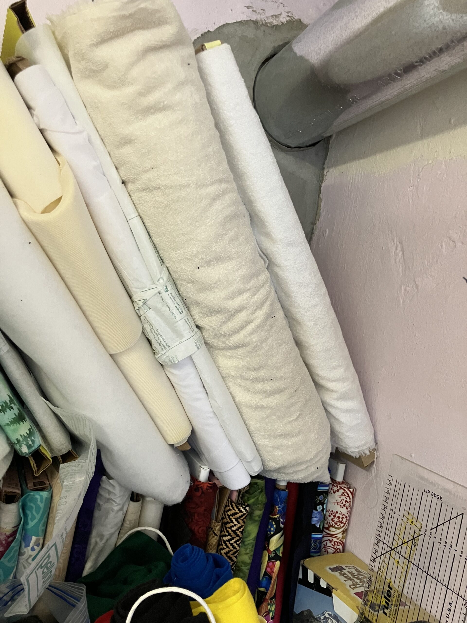 The first photo is my inventory control for my clam shell mitt – the advantage of SKUs is that I have them grouped within each collection – I cut the medium size already to be ready to assemble and have some of the fabric with it for the small or large size.